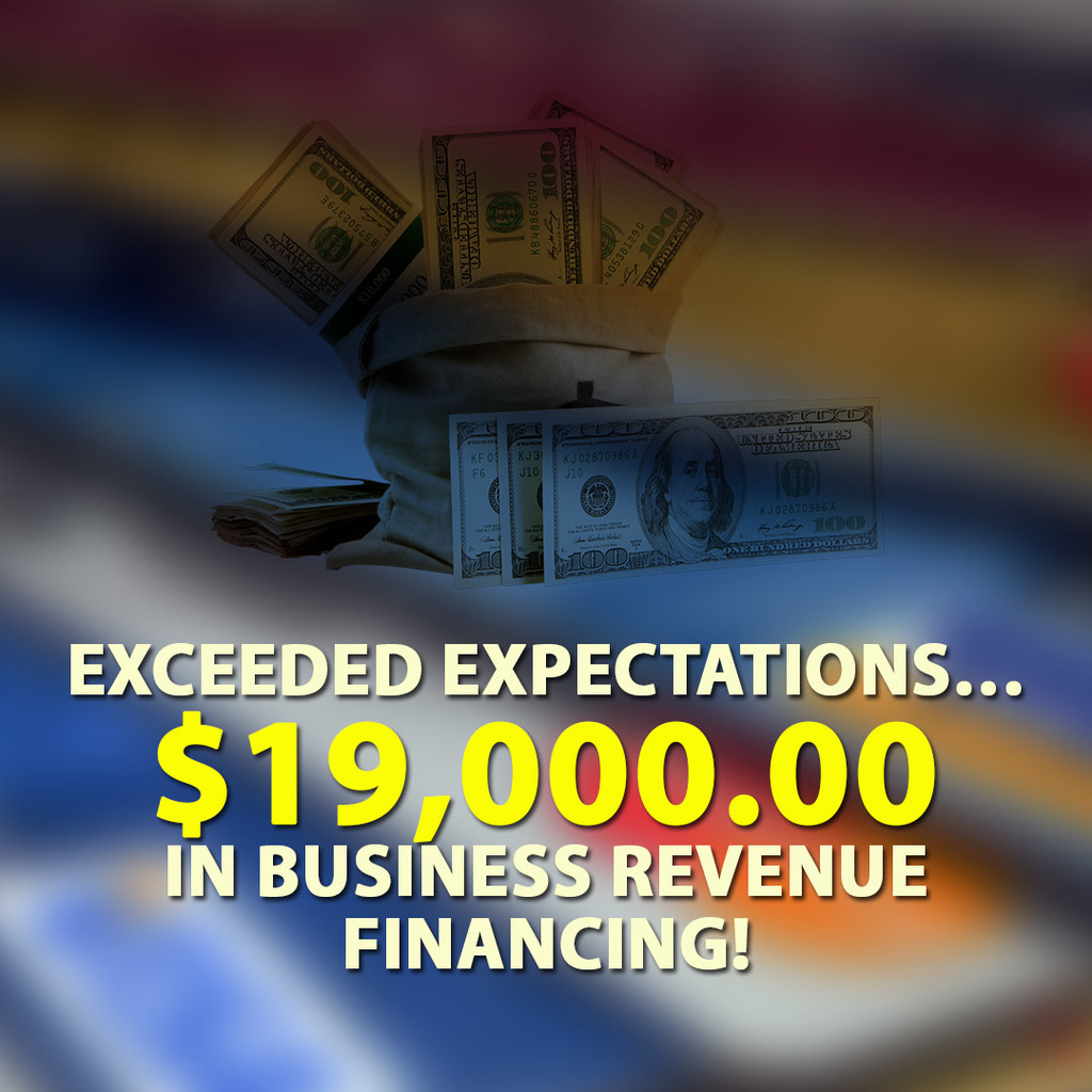 Exceeded expectations… $ 19,000.00 in Business Revenue financing!